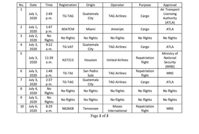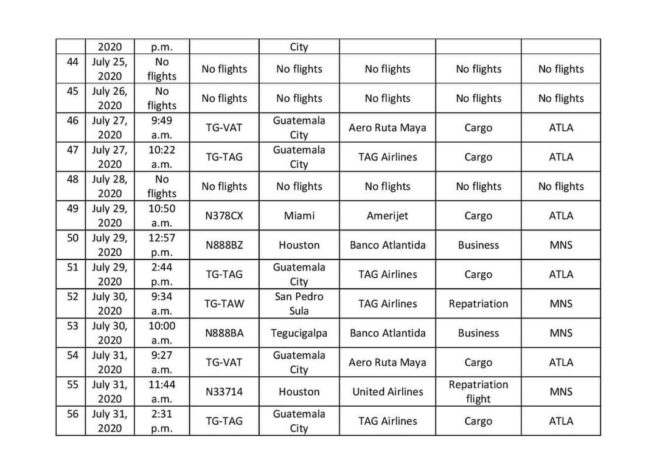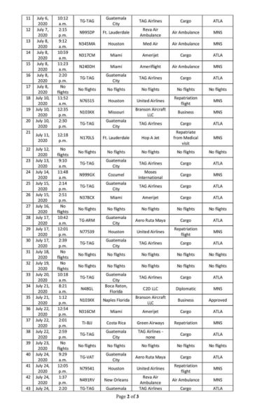 Below is a list of international flights that have entered Belize between the dates July 1, 2020 and July 31, 2020.