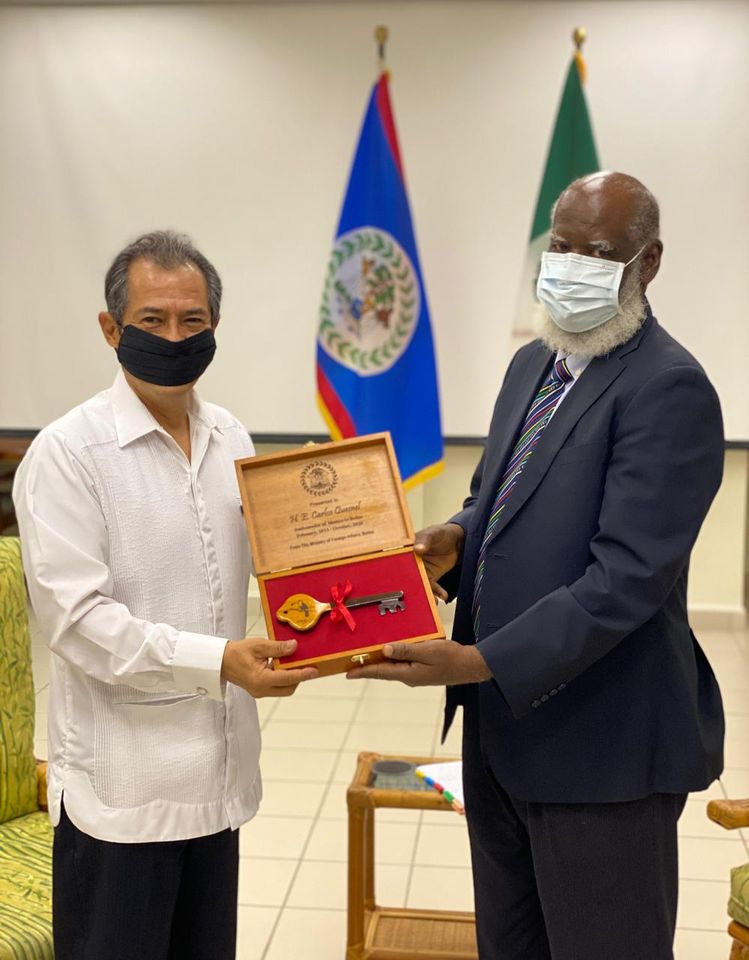 On September 22, 2020, the Minister of Foreign Affairs Hon. Wilfred Elrignton met with outgoing Ambassador of the United Mexican States to Belize, H.E. Mr. Carlos Quesnel Melendez, at the Ministry of Foreign Affairs in Belmopan.