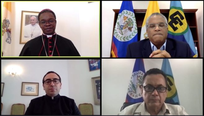 Hon. Eamon Courtenay, Minister of Foreign Affairs, Foreign Trade, and Immigration, received copies of the Letters of Credence of five new ambassadors to Belize at a virtual ceremony held on February 22, 2021.