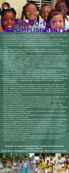 The Ministry of Human Development, Families and Indigenous Peoples’ Affairs is pleased to announce its accomplishments during its first 100 days.