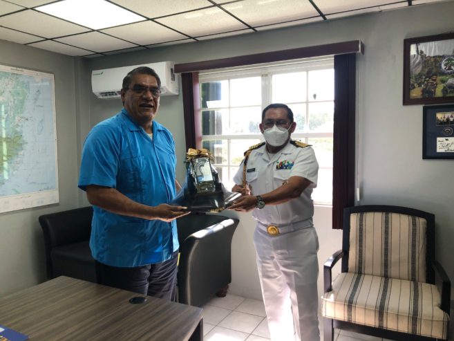 On Monday, March 22, 2021, Hon. Florencio Marin Jr., Minister of National Defence and Border Security, received Captain Freddy Ruben Perez Castillo, the newly appointed Mexican Naval Attaché to Belize, for a courtesy visit at the Curl Thompson Building, Belmopan.