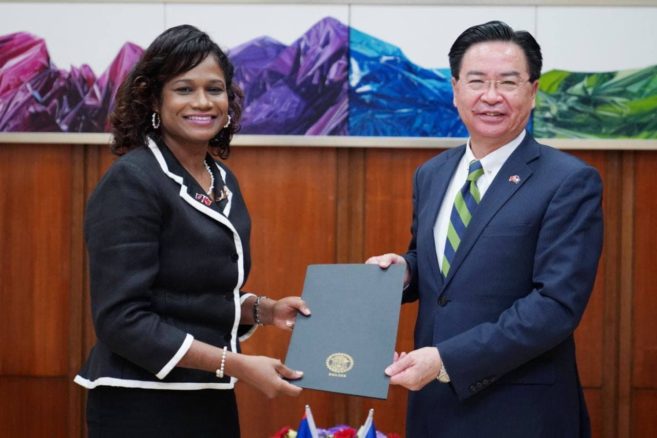 Her Excellency Dr. Candice Pitts, Belize’s newly appointed Ambassador Extraordinary and Plenipotentiary to the Republic of China (Taiwan), presented a copy of her letter of credence to H.E. Joseph Wu, Taiwan’s Minister of Foreign Affairs.