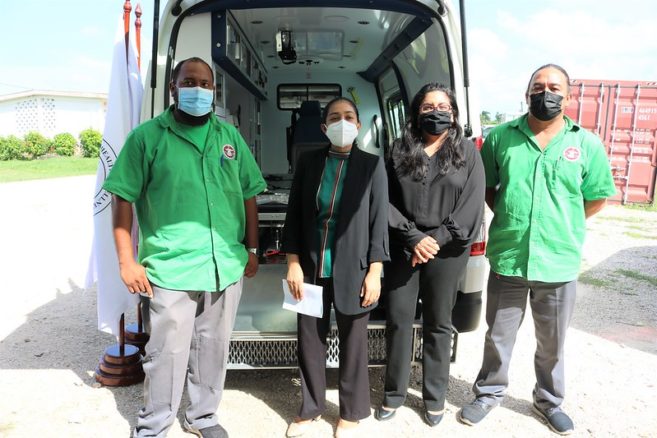 Dr. Deysi Mendez, chief executive officer in the ministry, was present at the ceremony along with Dr. Franelda Gutierrez, Regional Health Manager, Southern Health Region. Dr. Gutierrez was personally handed the keys to the two ambulances, which were transported to Dangriga Town.