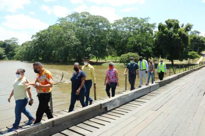 The Ministry of Finance, Economic Development and Investment, as the National Designated Authority to the Green Climate Fund (GCF), the Ministry of Sustainable Development, Climate Change and Disaster Risk Management, Taiwan’s International Cooperation and Development Fund (ICDF), Galen University and the Caribbean Community Climate Change Centre (CCCCC) participated in a field trip organized by the San Ignacio/Santa Elena (SISE) Town Council to flood prone sites in the Twin Towns on September 2, 2021.
