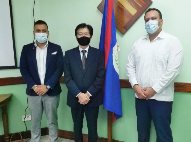 Dr. Osmond Martinez, chief executive officer and National Designated Authority (NDA) to the Green Climate Fund (GCF) in the Ministry of Finance, Economic Development and Investment along with Mr. Leroy Martinez, economist/GCF focal point recently met with H.E. Kazuhiro Iryu, Ambassador of Japan to Belize. The meeting was held on October 11, 2021, at the ministry’s conference room in Belmopan.