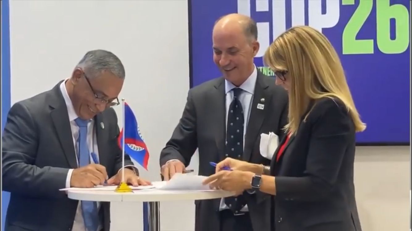 On Tuesday, November 2nd, Prime Minister Honourable John Briceño signed a Memorandum of Understanding (MOU) with the World Wildlife Fund (WWF) and The Nature Conservancy (TNC) to create a Project Finance initiative for Permanence (PFP) by 2025. This project, considered the first of its kind, is part of the Blue Bonds initiative to further protect and promote sustainable management of Belize’s coastal-marine ecosystems. The historic MOU was signed in Glasgow, Scotland, UK, during the ongoing 26th Conference of the Parties (COP26) climate change summit.