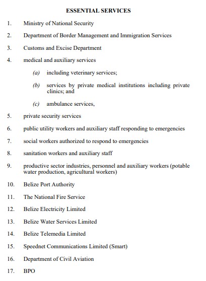 The mandate applies primarily to personnel who works with the government. Public officers refer to all employees working at governmental offices throughout the different ministries or departments. Some of these include the police, Labour Department, Fisheries Department, Belize Tax Services, and persons working in entities such as town or city councils. Essential workers are members of the security forces, Customs and Excise Department, and the Department of Immigration Services. Frontline workers such as health care providers are also essential workers.
