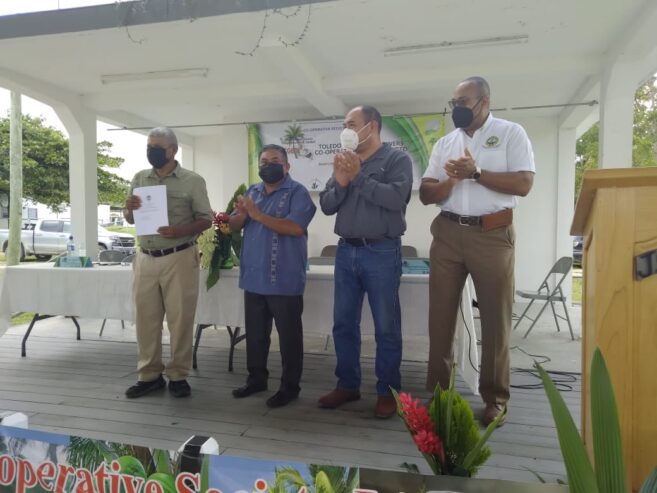 During the ceremony, remarks were made by Mr. Servulo Baeza, Chief Executive Officer, Ministry of Agriculture, Food Security, and Enterprise; Hon. Oscar Requena, Minister of Rural Transformation, Community Development, Labour and Local Government and Area Representative for Toledo West; Mr. Carlos Juarez, Chairman of the Co-operative; Mr. Densford Mangar, Extension Officer; Mr. Gareth Murillo, Registrar of Co-operatives; and Ms. Omaira Avila, Country Representative, CARDI. Present were farmers of the co-operative, community leaders, the District Agriculture Coordinator, and staff of the Ministry of Agriculture, Food Security and Enterprise.