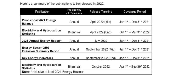 Concurrent to the publication of the 2020 Annual Energy Report, the Belize Energy Unit also released a statistical calendar outlining official publications scheduled for 2022. The statistical calendar for 2022 can be accessed via the Energy Unit’s website at www.energy.gov.bz