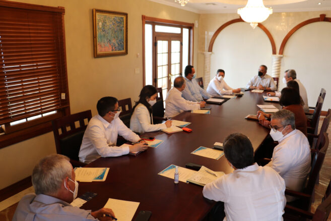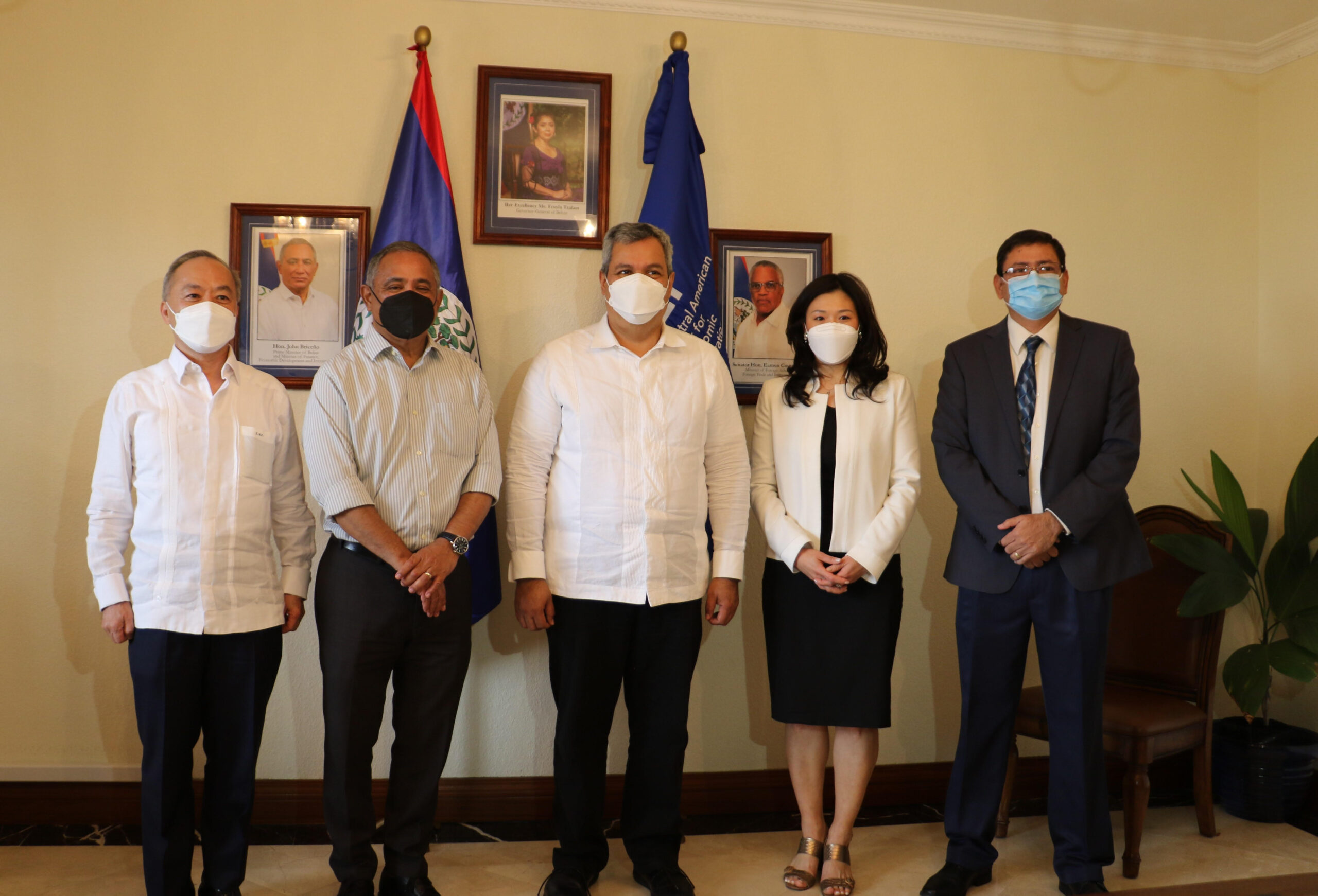 On January 17, 2022, Dr. Mossi and his delegation met with Prime Minister Hon. John Briceño, Hon. Christopher Coye, Minister of State in the Ministry of Finance, Economic Development and Investment; Mrs. Narda Garcia, CEO in the Ministry of Finance and Investment; Dr. Osmond Martinez, CEO in the Ministry of Economic Development; Mr. Joseph Waight, Financial Secretary; and Mr. Carlos Pol, Director, Climate Finance Unit and Technical Focal Point to CABEI, at the Laing Building in Belize City.