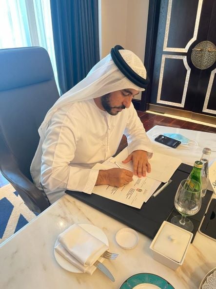 On Friday, April 1st, 2022, an MOU was signed at Sharjah, United Arab Emirates (UAE) between Belize, represented by BELTRAIDE Chairman, Mrs. Narda Garcia and Executive Director, Dr. Leroy Almendarez and the private office of His Highness Sheikh Ahmed Bin Faisal Al Qassimi, represented by His Highness Sheikh Ahmed Bin Faisal Al Qassimi, a member of the Royal Family of the Cities of Sharjah and Ras Al Khaimah, UAE (the Parties). The purpose of the MOU is to provide for and promote cooperation and collaboration between the Parties in the field of Foreign Direct Investments inflow to Belize.