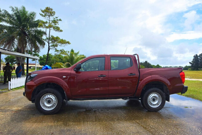 The Belize Tourism Board, through its Industry Development Department (IDD), donated a 2023 Nissan Frontier Pick-Up Truck to the Belize Defense Force (BDF). The vehicle was delivered during the official handing-over ceremony held on August 17, 2022 at the BDF Price Barracks compound in Ladyville. The handing-over was done by the Honorable Anthony Mahler (Minister of Tourism & Diaspora Relations) to the Honorable Oscar Mira (Minister of State in the Ministry of Defense & Border Security). Both ministers provided remarks at the ceremony and emphasized the need for increased security within emerging tourism destinations. The donation stems from the recent upgrades to the Mountain Pine Ridge region which have led to an increase in both local and international visitors to the region.