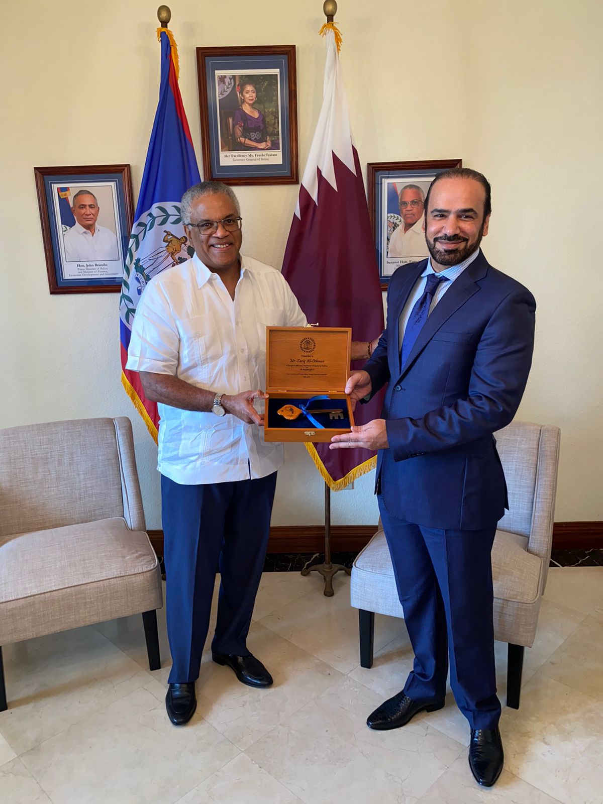 The minister honoured the efforts of Mr. Al Othman by presenting him with a Key of Friendship for his accomplishments and willingness in engaging with Belize and wished him every success on his next assignment.
