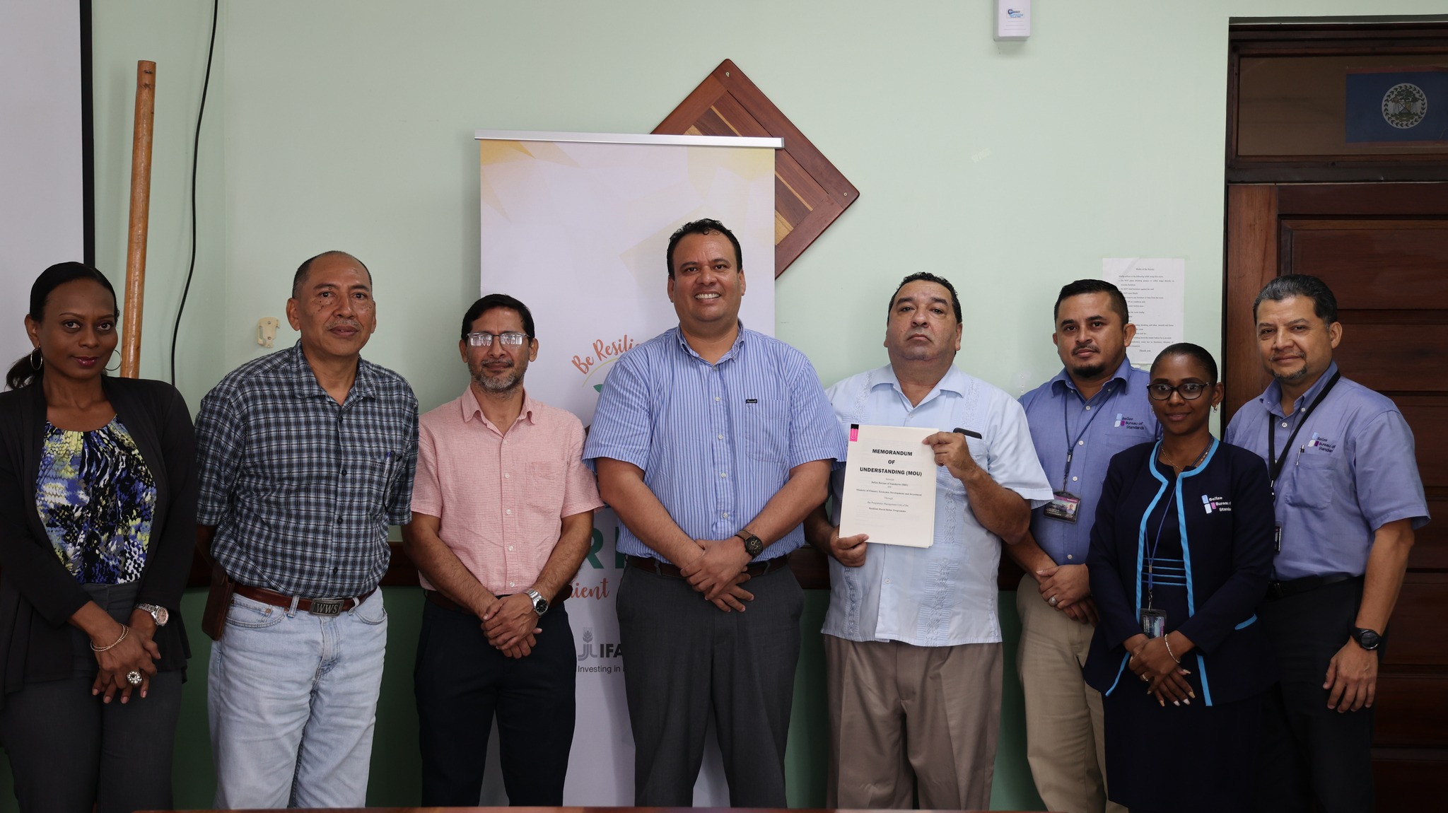CEO Dr. Osmond Martinez and Mr. Jose Trejo, Director of BBS, signed the MOU on behalf of their respective organizations. The MOU was witnessed by Dr. Geraldo Flowers, Program Manager for Resilient Rural Belize, and Mr. Lloyd Orellano, Standards Officer.
