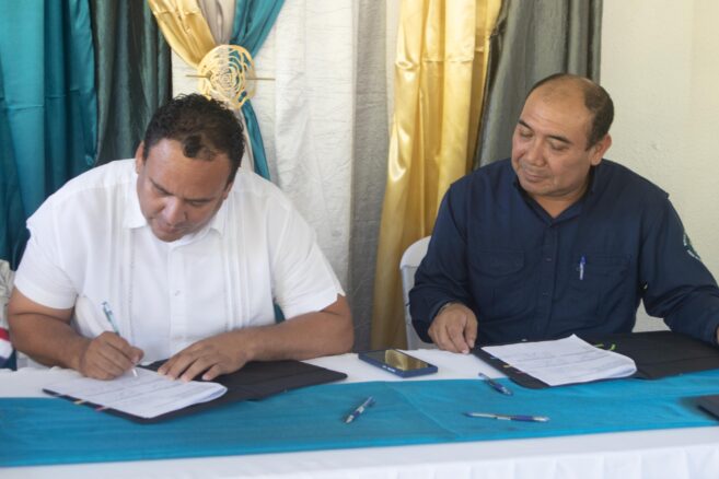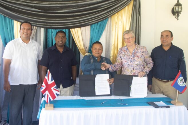 The Memorandum of Understanding was signed by C.E.O. Kennedy Carrillo on behalf of the Ministry of Blue Economy and Civil Aviation, C.E.O. Dr. Kenrick Williams on behalf of the Ministry of Sustainable Development, Climate Change and Disaster Risk Management, C.E.O. Servulo Baeza on behalf of the Ministry of Agriculture, Food Security and Enterprise, and C.E.O. Dr. Osmond Martinez on behalf of the Ministry of Economic Development and Her Excellency, Nicole Davison, British High Commissioner to Belize on behalf of the Government of the United Kingdom.