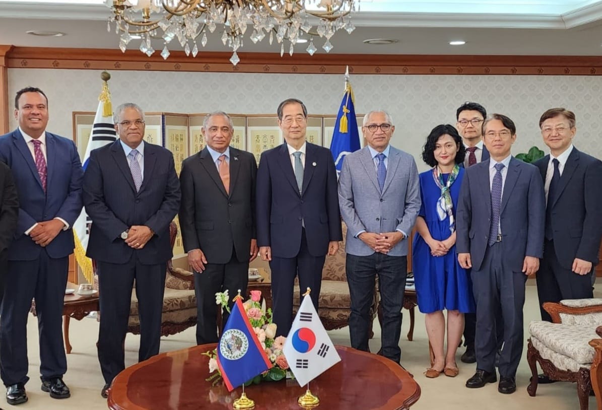 On May 26, 2023, Prime Minister Hon. John Briceño, Hon. Eamon Courtenay, Minister of Foreign Affairs, Foreign Trade and Immigration; H.E. Jaime Briceño, Belize’s Ambassador of Investment and to the Holy See; and Dr. Osmond Martinez, Chief Executive Officer in the Ministry of Economic Development, attended a bilateral meeting with Prime Minister Han Duck-soo of South Korea at the Seoul’s Government Complex.