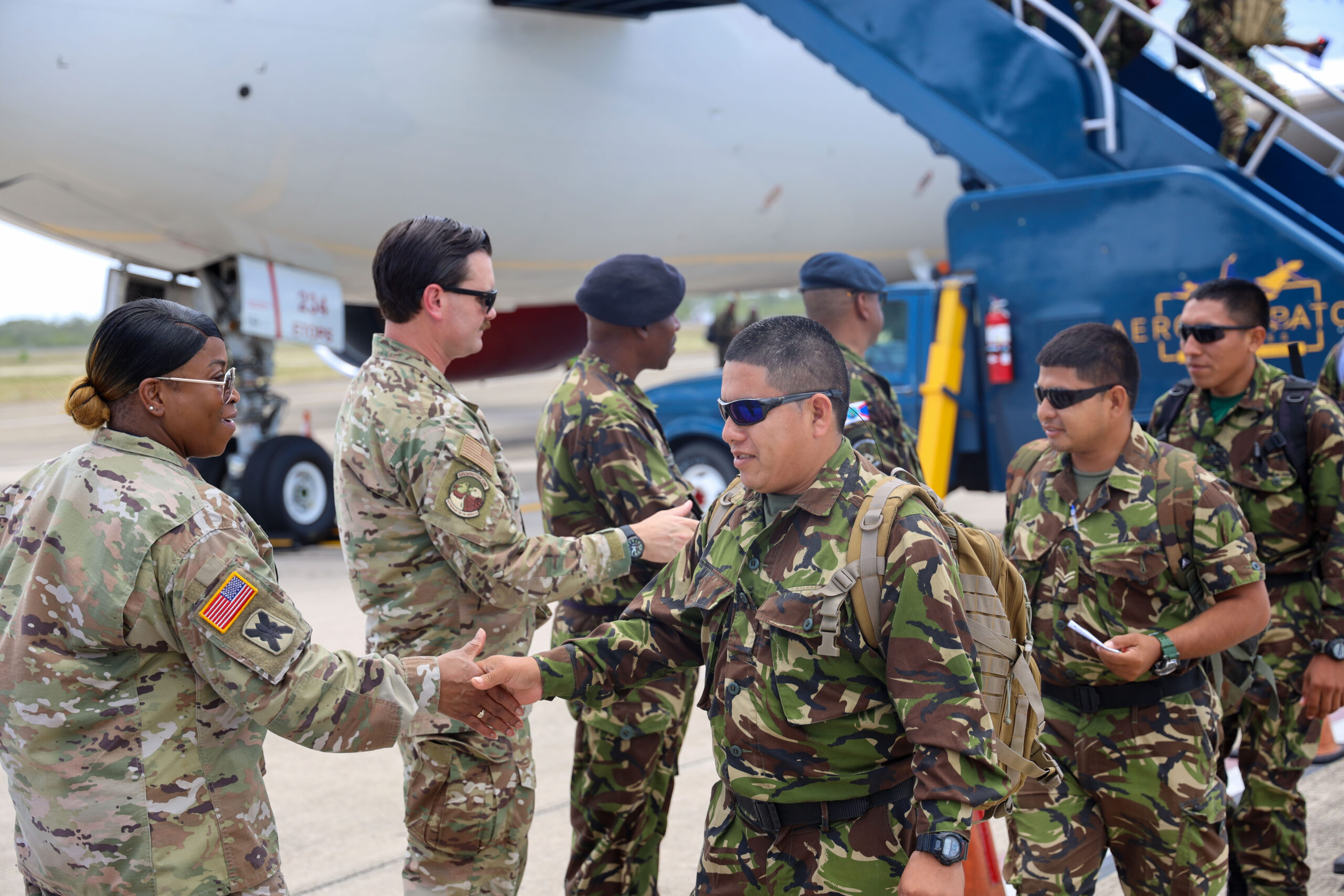 Acting Security Cooperation Chief for the U.S. Embassy Major Josiah Rawlings welcomed the Belizean troops at the Philip Goldson International Airport. Major Rawlings was accompanied by Belize Defence Force Deputy Commander Colonel Anthony Velasquez and Force Sergeant Major Wilfred Majano.