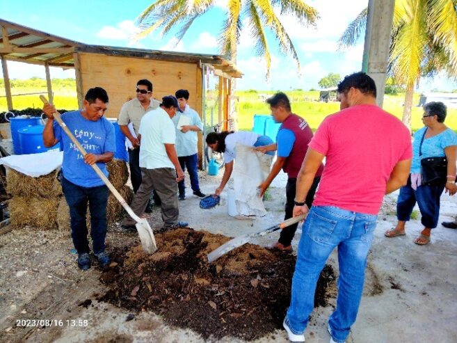 The two training sessions were part of the advisory services of a JICA project called COVID-19 Agricultural Value Chain Improvement in Belize, which commenced in February 2023. 28 coconut farmers from each of the districts participated in the two sessions. Through lectures and hands-on practice, they learnt various coconut tree management skills such as agro-ecological management, pest and disease management, hybridization, marketing, and organic fertilizer production. Mr. Enrique Rivas and Mr. David Nabet from MAFSE, Mr. Edgar White from the Caribbean Agricultural Research and Development Institute (CARDI), and several technicians from the Mexican Agency for International Cooperation for Development (AMEXCID) Sembrando Vida project conducted a series of lectures and practical sessions. In closing the training in each district, the lecturers and Mr. Kenichi Machida, the JICA Project team leader, presented participation certificates.