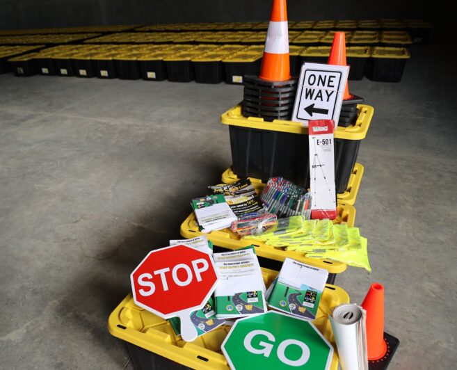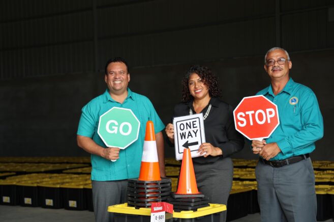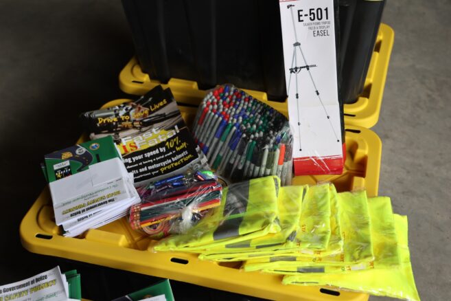 Valued at BZ$770,960.00, the kits contain road safety materials, including traffic cones, safety vests, whistles, various laminated traffic and road line marking signs, ‘Stop and Go’ paddles, and flash drives with safety videos and other teaching aides. The kits also contain pens, pencils, markers, exercise books, an easel and other small school supplies that can benefit both teachers and students.