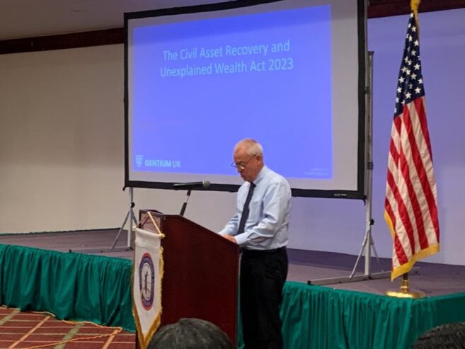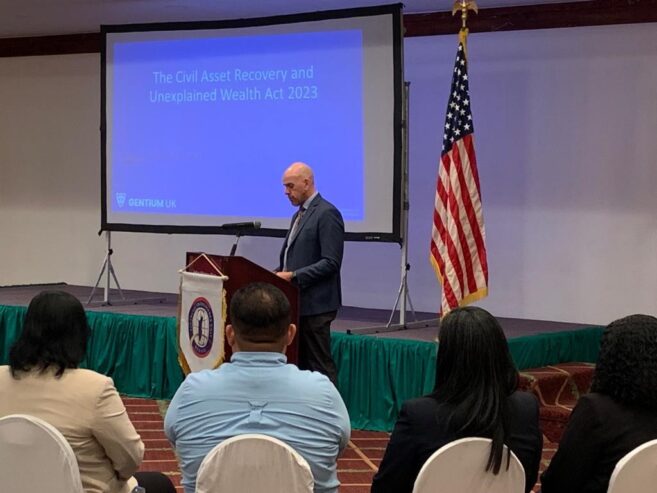 The conference brought together individuals from across Belize’s justice sector, including representatives from the private bar, civil society, prosecutors, customs officials, tax officials, immigration officials, forestry and fisheries officials, judges, and various Belizean and international stakeholders to discuss the Civil Asset Recovery and Unexplained Wealth Act, 2023. Mr. Ferguson, the U.K. expert who assisted in drafting the legislation, shared insights and guidance on elements of the legislation.