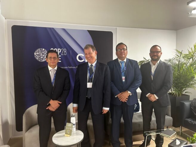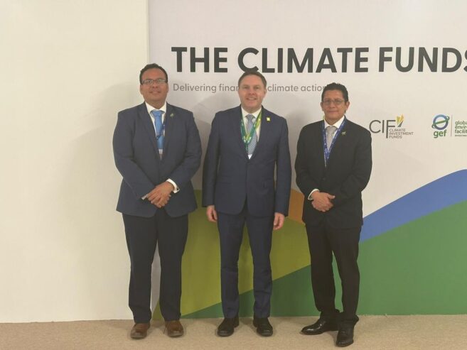 Hon. Christopher Coye, Minister of State in the Ministry of Finance, Economic Development and Investment, is leading a delegation at the 28th Conference of the Parties (COP28) in Dubai, United Arab Emirates. During the first three days of the event, Minister Coye, along with Dr. Osmond Martinez, Chief Executive Officer of the Ministry of Economic Development, held bilateral meetings, which have resulted in access of up to BZ$122 million identified and/or secured to support in-country climate adaptation and resiliency building measures.
