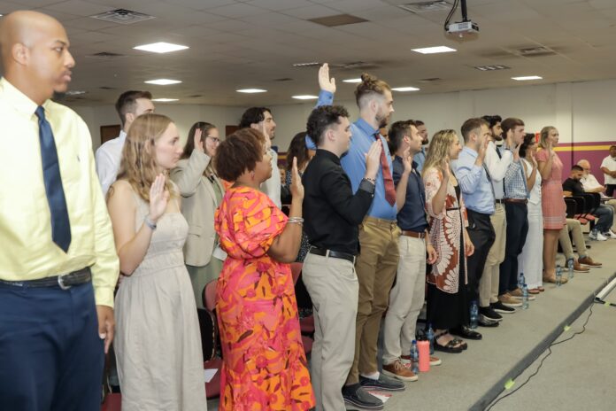 BELMOPAN, BELIZE July 22, 2024 – US Ambassador Michelle Kwan swore in a group of 23 new Volunteers at a ceremony in Belmopan last Friday. For the next two years these Volunteers will support the Youth Empowered by Sports (YES) Project in partnership with the Ministry of Youth, Sports & Transport. The goal of the YES Project is to see Belizean youth lead healthy and empowered lives and realize their full potential.