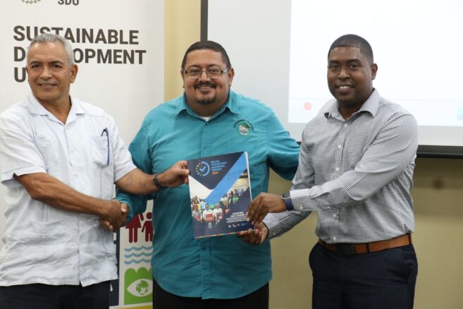 The event included a warm welcome remark by Chief Executive Officer, Dr. Kenrick Williams, as well as a presentation by Mr. Victor Alegria, Director of the SDU, on the findings of the progress and recommendations made towards achieving and accelerating the implementation of the SDGs.