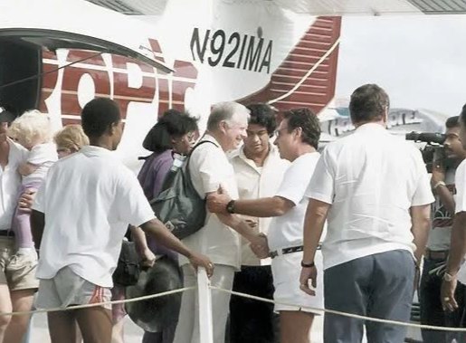 Jimmy Carter became good friends with the nation’s first Prime Minister, the late Right Honorable George Price, and visited Belize in 1996. During his visit, Carter flew on Tropic Air to San Pedro Town on Ambergris Caye, where he vacationed with his family. He met with former Prime Minister the Right Honorable Said Musa and George Price, whom he named in 1986 as Vice Chairman of the Council of the Heads of Government of the Americas. The council’s objective was to reinforce democracy in the Americas, promote multilateral efforts to resolve conflicts in the Western Hemisphere, and encourage regional economic cooperation.