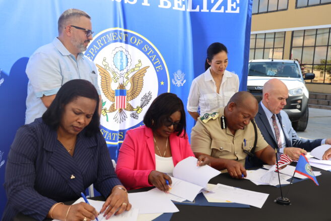 Joint Press Release, Belmopan, Belize January 10, 2025 – The U.S. Embassy, through the Bureau of International Narcotics & Law Enforcement Affairs (INL), reaffirms its commitment to provide support to the Government of Belize in its fight against transnational organized crime and commitment to improve border security. A total of nine vehicles valued at approximately US$380,000 were handed over to the following Government of Belize agencies: Department of Border Management and Immigration Services (1), Belize Customs and Excise Department’s Intelligence Unit and Enforcement Unit (2), the Belize Police Department’s Mobile Interdiction Team (4) and Anti-Narcotics Unit (2). The vehicles will be used to enhance the mobility of border security operations.