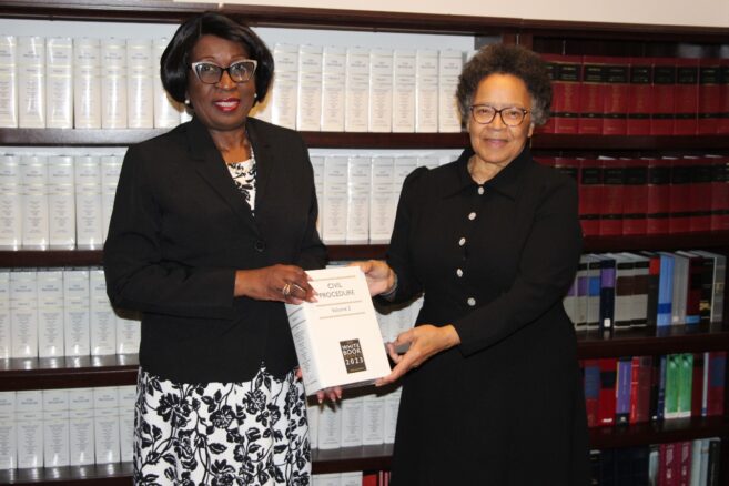 The shipment of books arrived at an especially opportune time, as the Judicial Education Institute of the Senior Courts is currently conducting a seminar on Sentencing Guidelines, Judgment Writing, and Evidence, aimed at enhancing the expertise of judges and magistrates through continued education.