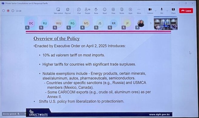 During a meeting on April 8th, the Honorable Francis Fonseca, Minister of Foreign Affairs, Foreign Trade, Culture and Immigration, and the Honorable Marconi Leal, Minister of State for Foreign Trade, discussed the immediate and long-term challenges that tariffs pose for Belize’s export sectors. According to reports from the meeting, participants expressed serious concerns about rising costs, particularly considering recent expansions in the U.S. market, trade disruptions, and competitiveness issues. They specifically highlighted the increase in costs due to uncertainties surrounding shipping.