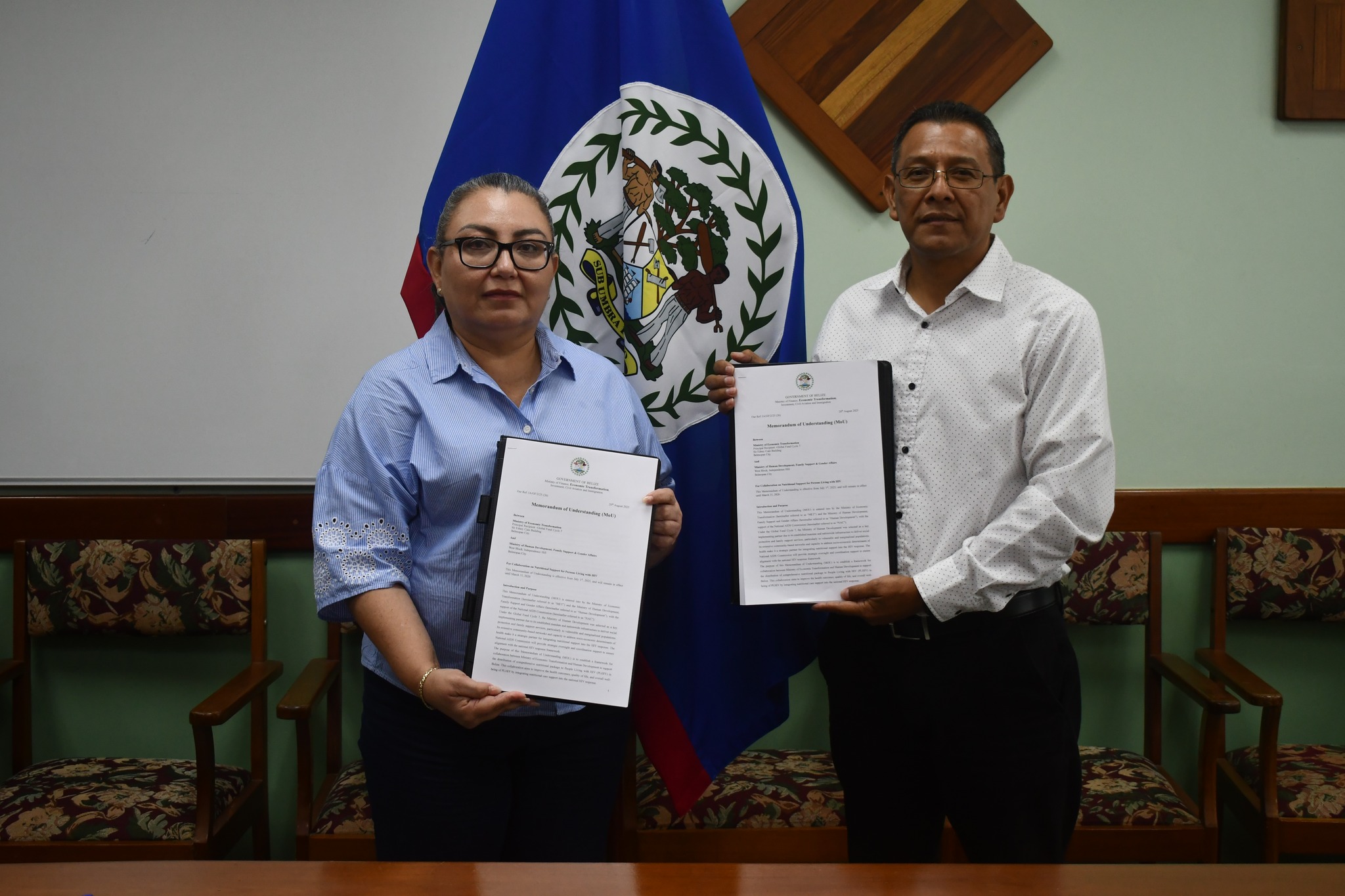 Press Release, Belmopan, August 21, 2025. The Ministry of Economic Transformation (MET) and the Ministry of Human Development, Family Support, and Gender Affairs, with support from the National AIDS Commission (NAC), have signed a Memorandum of Understanding (MOU) to provide nutritional support to People Living with HIV (PLHIV) across Belize.