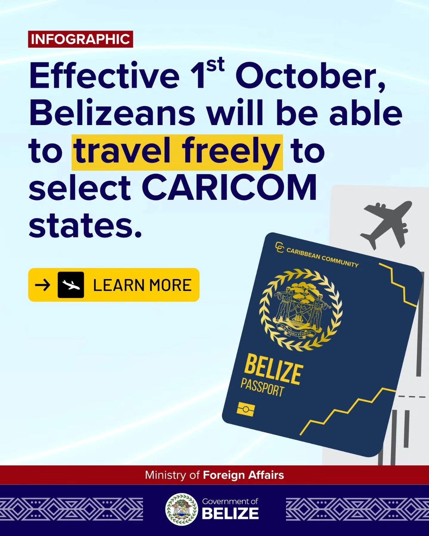 Effective Wednesday, October 1st, Belizeans can now live and work freely in Barbados, Dominica, and St. Vincent and the Grenadines. As part of an agreement among the countries, citizens will be allowed to stay indefinitely and work without a permit. They will also have access to basic healthcare and public education for children. The historic initiative was agreed to in July during the CARICOM Heads of Government meeting held in Jamaica.