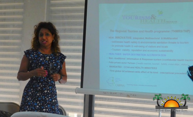 Aiming to raise awareness on a newly implemented Tourism and Health Information System (THIS) the Caribbean Public Health Agency (CARPHA) held a training session at the NEMO office in San Pedro Town on Wednesday, April 25th. The presentation was facilitated by Head of Tourism and Health Programme and Foodborne Diseases of CARPHA Doctor Lisa Inder, with members of the islands hospitality industry in attendance.