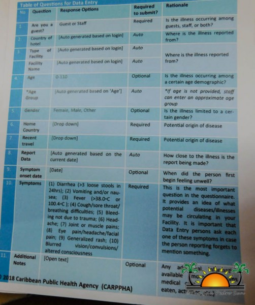 The session began shortly after 4:30PM, with Dr. Inder thanking everyone for their attendance, followed by a brief explanation of the program. THIS is a real-time web-based health information management system for hotels and other facilities to monitor the health of their visitors and staff. The program monitors provide alerts on the health of guests and staff members. In a partnership between the Caribbean Public Health Agency (CARPHA), the Ministries of Health and Tourism, the Belize Tourism Board Members, and the hospitality industry, the program is part of the larger National Tourism and Health Program (THP). “With this system, we can help control the spread of illness by knowing when and where it is occurring as soon as possible,” said Dr. Inder. “This is the reason the CARPHA designed this system in order to allow hotels, guesthouses, and visitors to report their illness as they begin to feel sick. Early reporting will promote faster response and reduce the escalation and spread of illness.”