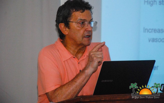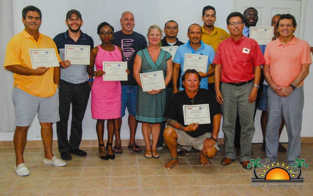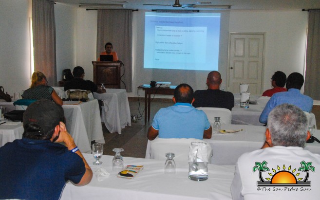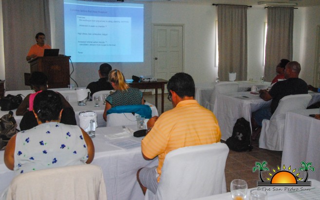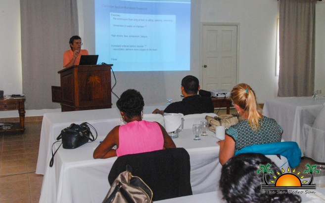 The event was organized by San Pedro’s Dr. Daniel Gonzalez in collaboration with the Belize Chamber Project and Divers Alert Network (DAN). Gonzalez shared with The San Pedro Sun that given the fact that the area around Ambergris Caye is a premier diving destination, it is very important that persons working in the tourism industry be trained and ready to efficiently address any giving situation with diving incidents. “Many medical professionals do not learn anything about diving medicine, or how to treat someone in such a situation. Now we have that opportunity to learn and branch out in this field,” said Gonzalez. “This is very important because when we are in these areas where we will get in contact with divers, we can know how to react to the situation and save lives.” One of the most common diving illnesses is decompression sickness, a condition arising from dissolved gases coming out of solution into bubbles inside the body. This normally occurs when a diver moves from deep water towards the surface in too short a space of time”.