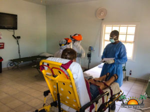 Shortly after 10AM, the wailing sound of sirens filled the air as the ambulance made its way from the San Pedro Care Center to pick up the ‘patient’.