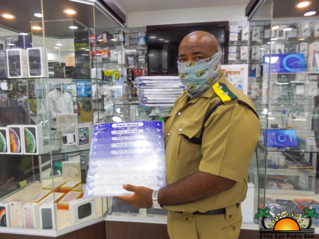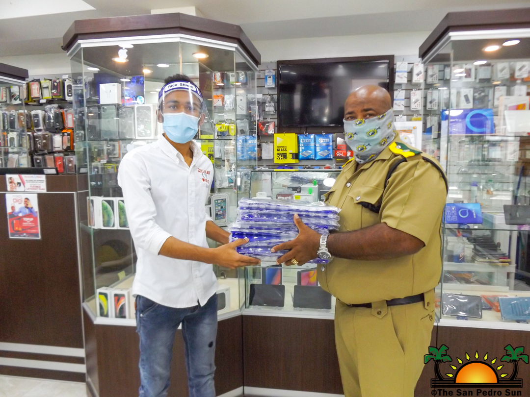 A total of 110 face shields/masks were donated to the San Pedro and Caye Caulker police formations on Tuesday, September 1st by Cellular World. The face shields were handed over to the Officer in Charge of both police formations, Superintendent Christopher Noble at Cellular World’s branch in San Pedro Town on Pescador Drive. The items are expected to better protect police officers from getting infected with COVID-19.
