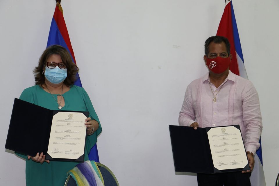 Minister of Health, Hon. Pablo Marin and Ambassador of Cuba for Belize, H. E. Lissette Pérez Pérez, signed the 2020-2021 Cooperative Health Agreement in a brief ceremony held in Belmopan on October 5, 2020.