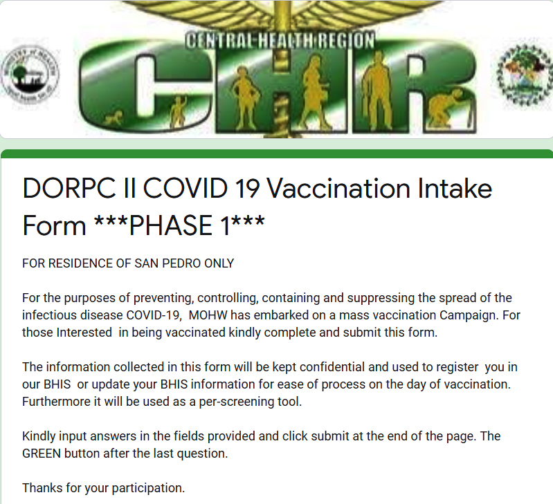The roll-out of the Oxford AstraZeneca vaccine for COVID-19 continues in San Pedro Town. The medical team at the Dr. Otto Rodriguez San Pedro Polyclinic II has created an online form where islanders can register. The form is for residents of San Pedro only can be accessed by clicking https://bit.ly/3bHObe9