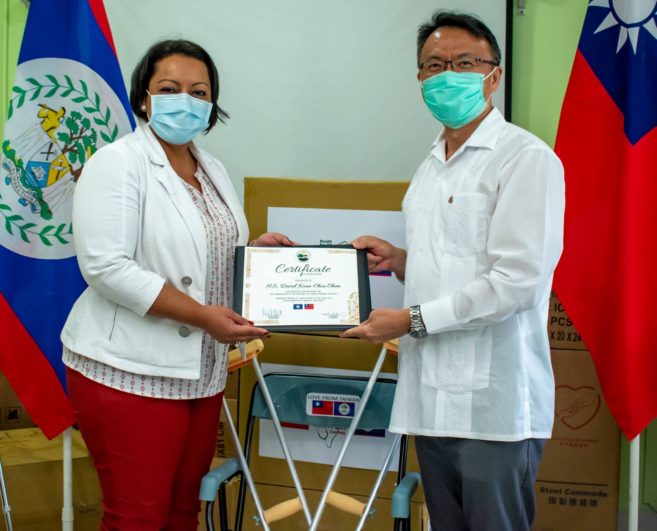 Hon. Michel Chebat, Minister of Health & Wellness, and H.E. David Kuan-Chou Chien, Ambassador of the Republic of China (Taiwan) to Belize, met on April 29th in Belmopan for a handing over of medical equipment.