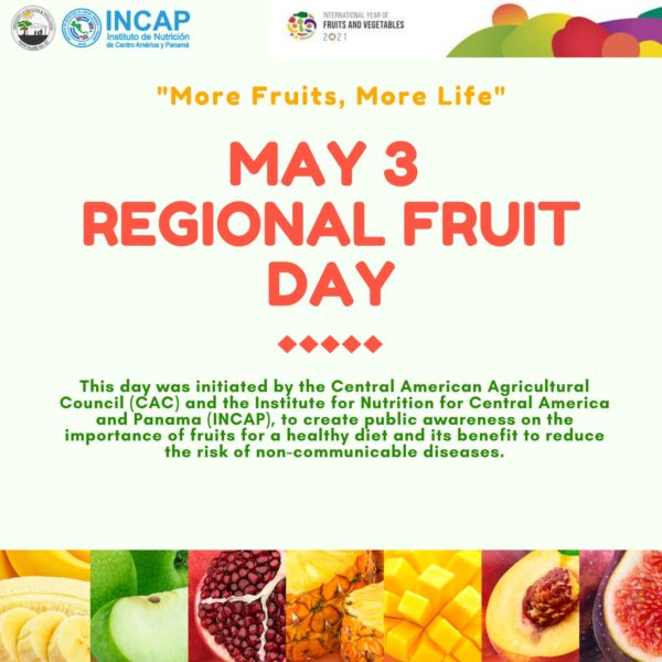Regional Fruit Day was initiated by the Central American Agricultural Council and the Institute of Nutrition for Central America and Panama. This year also marks the celebration of the International Year of Fruits and Vegetables within the context of the United Nations Decade of Action on Nutrition (2016-2025) and the United Nations Decade of Family Farming (2019-2028). These celebrations are linked to provide greater visibility to farmers while raising awareness of food security and nutrition.