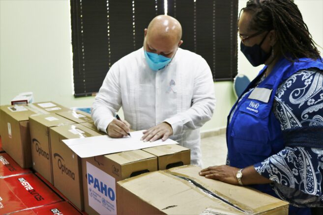To boost COVID-19 risk communication efforts, the Pan American Health Organization/World Health Organization (PAHO/WHO) donated several equipment and materials to the Ministry of Health and Wellness (MoHW) in supporting their COVID-19 Vaccine Campaign.