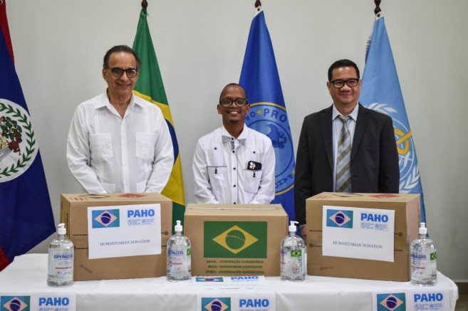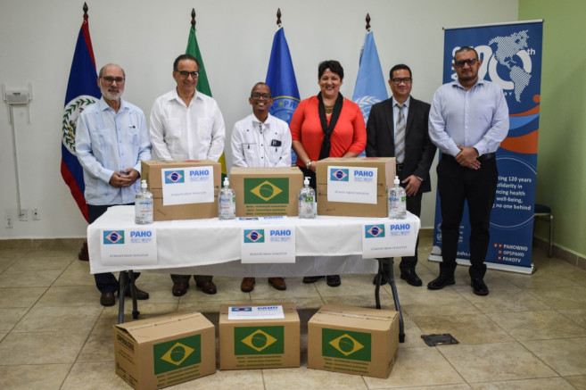 Through the assistance of the Brazilian Cooperation Agency, PAHO/WHO coordinated the acquisition, transportation and delivery of the sanitizing alcohol-gel to Belize.