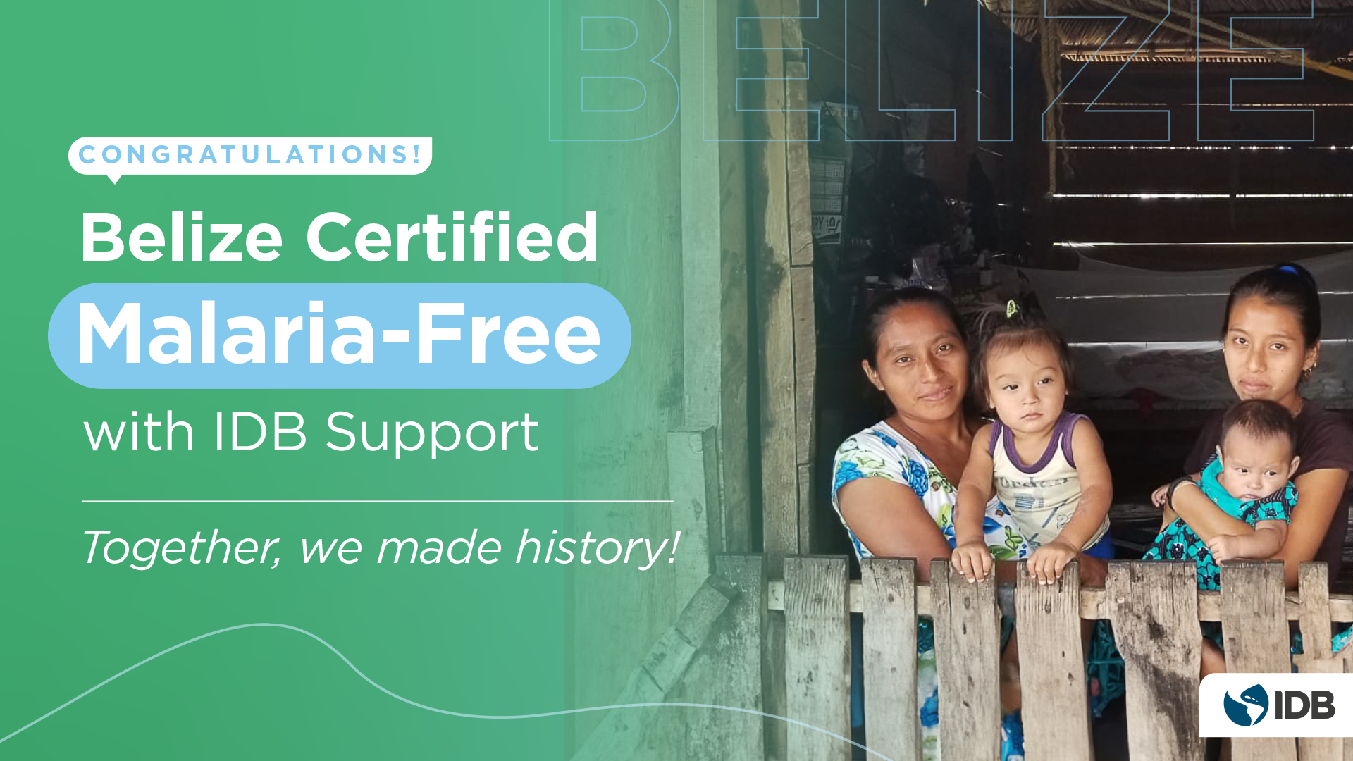 After three years without autochthonous cases, the World Health Organization (WHO) has certified Belize as malaria-free. This major achievement is the result of years of hard work and collaboration between the government of Belize and the Regional Malaria Elimination Initiative (RMEI), supported by the IDB, the Pan-American Health Organization (PAHO), donors and other technical partners.