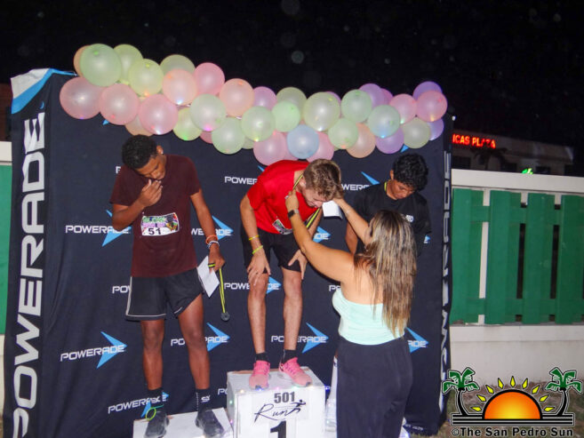 After the runners reached the finish line, there was a short ceremony to honor the top three male and female athletes. Councilor Adaly Ayuso from the San Pedro Town Council and organizers presented the winners with their medals. In the female category included Chrystal Thomas, Merlin Sansores and Lliani Ordonez. While in the male group, it was Jesus Contreras, Shovan Berry, and Cassian Chavarria. All other participants received an award as well.