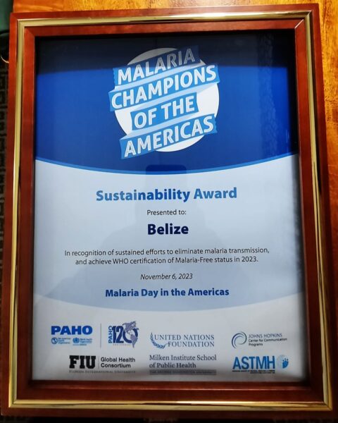 Belize has been honored with the 2023 Pan American Health Organization (PAHO) Malaria Champions of the Americas prize. Belize was honored with the prestigious recognition on Friday, November 3rd, in the United States capital, Washington, DC. Other countries also receiving the award included the Dominican Republic, Suriname, the Mexican state of Quintana Roo, and the Brazilian city of Manaus.