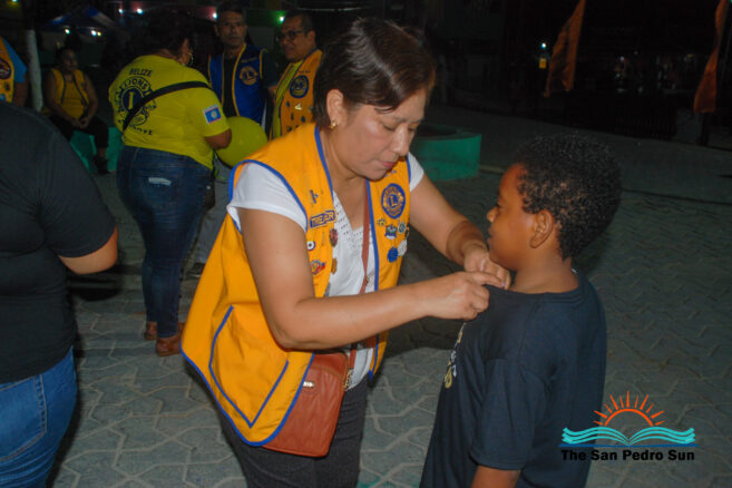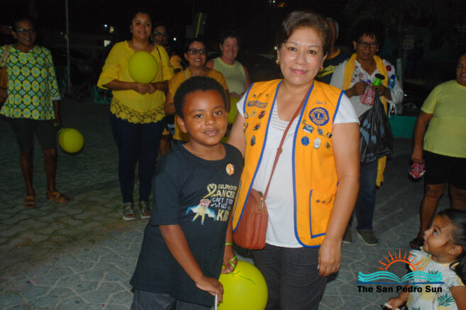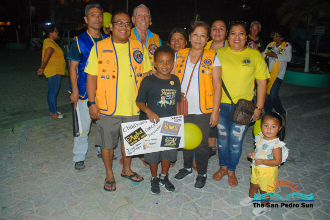Those participating wore yellow shirts and balloons. They walked up Barrier Reef Drive from Central Park north to San Juan roundabout at 6PM. Then they marched down Pescador Drive until they arrived at Central Park, where they had started. At the end of the activity, Lion Ana Ico, who leads the Childhood Cancer Cause for Lions, presented little Belisle with a pin for fighting and surviving the illness.