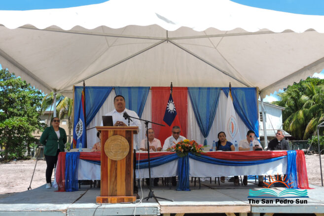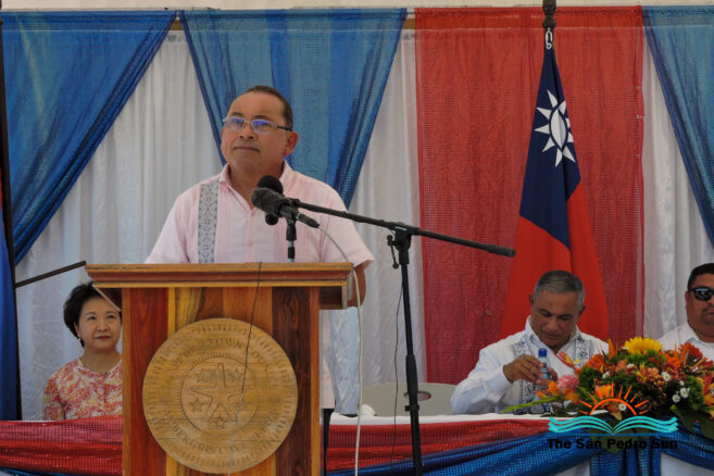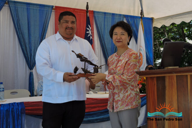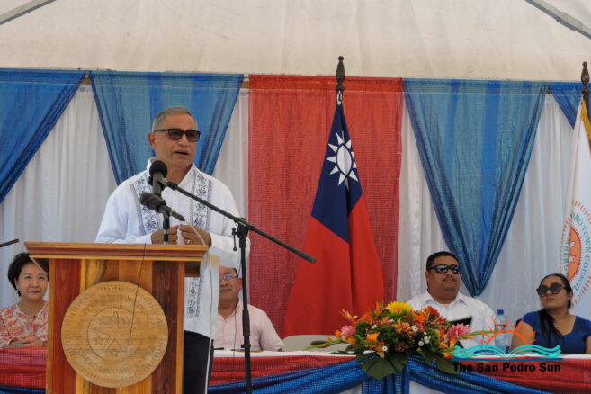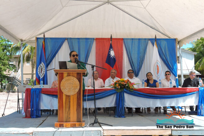 The ceremony started shortly after 10 AM with the Mistress of Ceremony, Natalie Arceo, leading everyone to sing the Belize and Taiwan National Anthems. Father Edwardo Montemayor of the San Pedro Catholic Church then delivered a short invocation of thanksgiving.