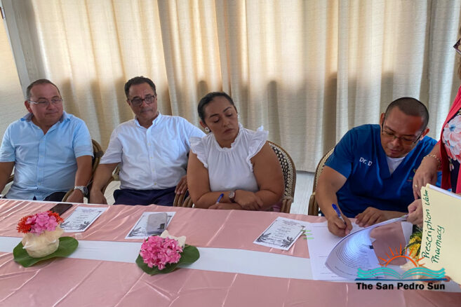 Dr. Sansores’ speech was followed by the official contract signing of the NHI in Caye Caulker. Dr. Sansores signed on behalf of Dr. D’s Clinic, and Chairlady Pott signed on behalf of Prescription Value Pharmacy.